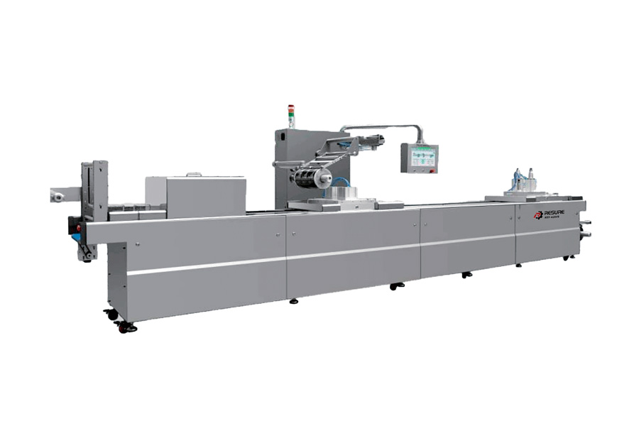 Термоформовочная машина RST-425VS отличается высокой эффективностью, гибкостью и точностью, что позволяет ей адаптироваться к различным типам пластиковых материалов. Она состоит из основного корпуса, формующих и предварительно нагревающих форм, механизма подачи нижней пленки, механизма подачи верхней пленки, системы герметизации вакуумной упаковки в пленку (VSP), цепного конвейерного механизма, системы резки, системы переработки отходов пленки, пневматической системы, системы охлаждения и системы управления.