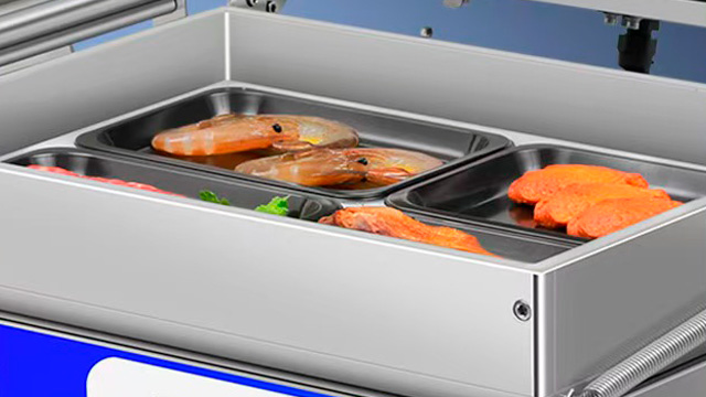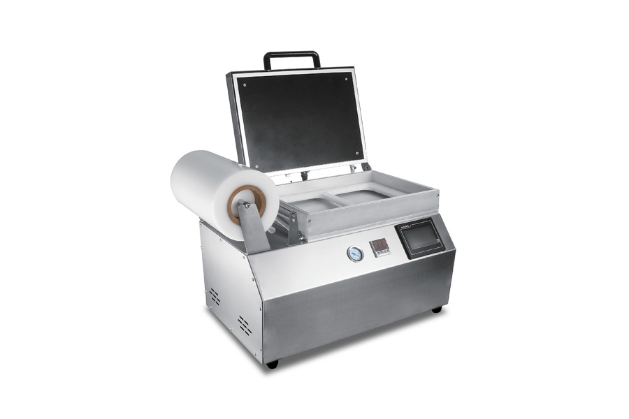 Настольная машина для вакуумной упаковки с кожей с компактной конструкцией и небольшими габаритами. Доступна в нескольких моделях, подходит для упаковки в кожухи и поддоны, с легкой заменой форм.