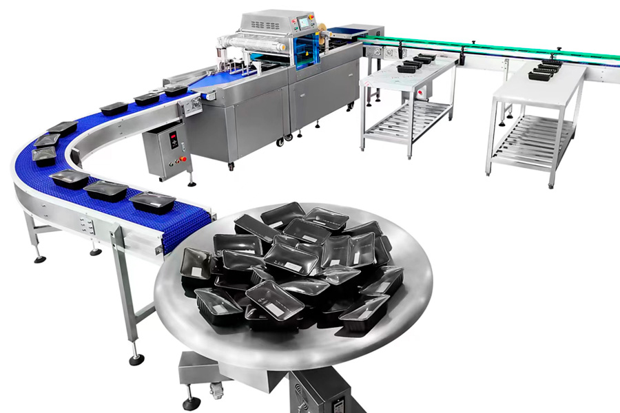 RS-MA58&63 — это лотковый запайщик цепного типа с высокой производительностью, подходящий для упаковки готовых блюд, мяса, фруктов и других продуктов, эффективно продлевая их срок хранения.