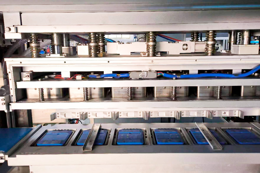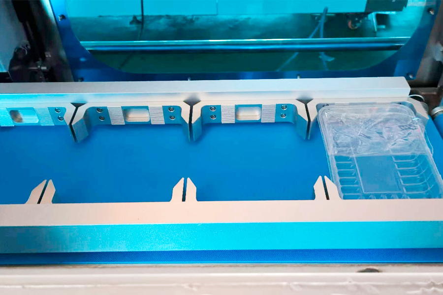 Использует умные алгоритмы для автоматической сортировки и выравнивания лотков с серво-приводом, не требуя наличия специального персонала. Работники просто размещают лотки, а оборудование автоматически выполняет транспортировку и позиционирование, повышая эффективность упаковки.