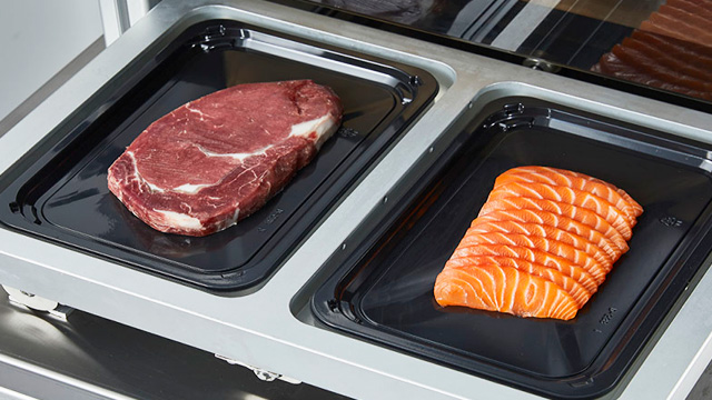Полный список продуктов для упаковки: Стейк, Бараньи ребрышки, Свинина кусочками, Куриная грудка, Целая птица, Рыба, Лосось, Тунец, Креветки, Моллюски, Бекон, Ветчина, Колбаса, Сыр (ломтиками или целым куском), Готовые блюда.