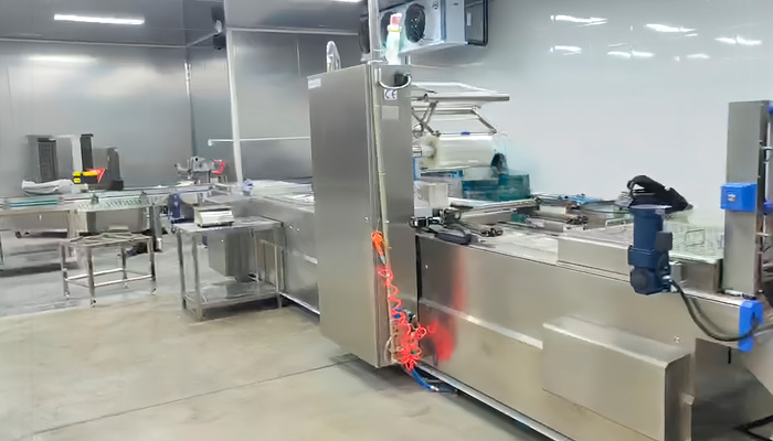 - Основные технические возможности: термоформовочная машина для производства и запайки лотков из мягкой пленки в сочетании с автоматическим подсчетом веса на мультиголовочных весах для точного порционирования продуктов.