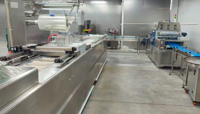 Целью данного проекта является создание полностью автоматизированного решения по интеграции упаковки из гибкой пленки с термоформованием для производителей продуктов питания, ориентированного на эффективные и точные процессы упаковки продуктов питания. Используя процесс термоформования гибкой пленки, решение обеспечивает эффективную защиту пищевых продуктов от запечатывания, одновременно улучшая эстетику упаковки и удобство транспортировки, что позволяет продлить срок свежести продуктов, снизить себестоимость и повысить эффективность транспортировки. Это интегрированное решение позволяет легко объединить процессы формования, дозирования, розлива, герметизации и контроля качества гибкой пленки, чтобы помочь клиентам удовлетворить требования рынка к качеству, эффективности и безопасности пищевых продуктов.