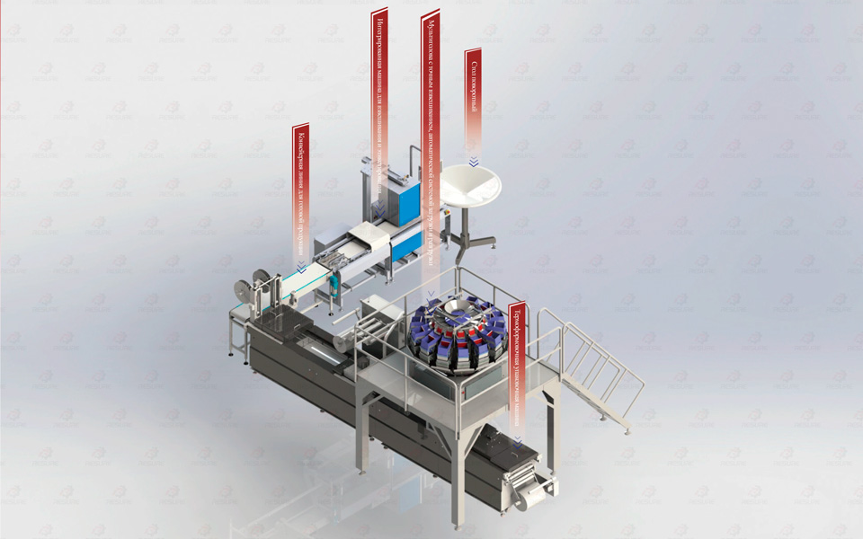Данное проект направлен на создание линии по производству гибкой пленочной термоформовочной упаковки для пищевых продуктов с целью обеспечения эффективной и безопасной упаковки продуктов питания путем точного взвешивания с помощью мультиголовочных весов, термоформовочной упаковки и автоматизированного вспомогательного оборудования для удовлетворения рыночного спроса на высококачественную и удобную упаковку. Проект очетает в себе технологию термоформования гибкой пленки с автоматическими системами взвешивания, транспортировки и комплектации, обеспечивая эффективность и порядок производственного процесса, а также соответствие качества продукции стандартам.